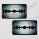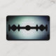 Metallisches glänzendes Rasierbild. Karte als scharfe Rasierklinge lustige und berufliche Abdeckung. Friseursalon und Friseurdeckel Metallische Deckenleuchte mit einstellbarer Hintergrundfarbe. Die Rückseite des Kartentextes ist hinter dem Bild.