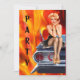 Erstellt aus einem Foto, nahm ich von einem Vintagen frisierte Auto auf einem Hintergrund von Flammen zusammen mit einem Vintagen Pinup-Mädchen. Passen Sie es mit Ihrem eigenen Text an. Ideal für eine Geburtstagsfeier für Typ. Retro cool!