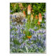 Ein schöner Schmetterling ist auf einer blauen Blume inmitten eines Sommergarten gelandet.