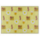 Niedliche, handgezogene Cartoon-Frittiereier, Bacon, Waffeln und Orangensaftschneider.