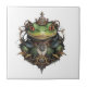 In einem Steampunkdesign fotografiert, ist ein grüner Frosch.