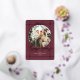 Upload your family photo, enter your family name (like "The Anderson Family"), and add the year. Your photo appears in the elegant circular bow-topped frame on the front. The sophisticated burgundy and gold design, modern script typography, and coordinating tree pattern back are already part of the beautiful layout.
