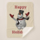 Niedliches Bild eines glücklichen Snowman auf einem beige Hintergrund, mit Mitteilung "glückliche Feiertage" im Rot, wird auf dieser Sherpa Fleecedecke gekennzeichnet. Eine große Weise, für die Feiertage zu verzieren oder als Geschenk zu den Snowmanfans zu geben oder als cozy und warm zu behalten Baby- oder Kinddecke zu verwenden. Decke ist 30" x 40" und wird in vibrierendem farbenreichem auf einer Seite mit dem weichsten Sherpa gedruckt, das auf der Rückseite verfügbar ist!