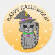 Frohe Halloween-Katze in Hexenhut Runder Aufkleber
