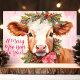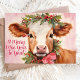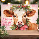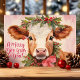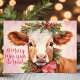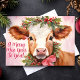 Wünschen Sie Ihren Lieben ein "Merry Moo Year" mit dieser reizvollen Weihnachtskarte mit einer bezaubernden Kuh, die einen festlichen heiligen Kranz und einen rosa Bogen trägt. Der spielerische Pun und der süße Ausdruck der Kuh bringen jedem ein Lächeln ins Gesicht. Diese einzigartige und fröhliche Karte ist der perfekte Weg, um Feiertagssjubeln zu verbreiten und warme Wünsche für ein glückliches neues Jahr zu senden.