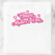 Ein wunderschön gestaltetes Muttertagsaufkleber mit lebhaften rosa Schriftzeichen auf einem sauberen, weißen Hintergrund.