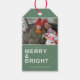 Individuelle Weihnachtsgeschenk-Tag in unserem grünen "Mögen Ihre Tage fröhlich und hell sein" Design. Passen Sie mit Ihrem Foto und Ihren Namen an. Verwenden Sie zum besten Ergebnis ein rechteckiges Foto mit horizontalem Layout oder schneiden Sie Ihr Foto vor dem Hochladen in ein horizontales Rechteck ein. Tag kehrt zu einem koordinierenden Design der grünen und weißen Schneeflocke zurück. Besuchen Sie unser Geschäft, um zu sehen, die Koordinierung Weihnachtskarten in diesem Design.