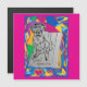 Frohe Valentinstag Magnetkarte mit meiner Kunstillustration eines Labradors, der auf einem Picknicktisch sitzt. Innen leer, um Ihre eigene Nachricht hinzuzufügen.