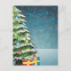 Weihnachtsgrüße mit Bäumen, Schnee und Geschenkpackung