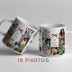 Multi-Foto Collage festliche rote Bogen Familie Merry Weihnachtstypografie Sake Tasse personalisiert mit 16 quadratischen benutzerdefinierte Bilder und Ihrem Familiennamen und Jahr.