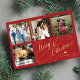 Elegante stilvolle Frohe Weihnachten Imitate Gold klassische Kalligraphie Skript vier viereckige Familie Fotos einfache rote Urlaubskarte mit Ihrem personalisierten Text auf beiden Seiten. ++++++++ BITTE BEACHTEN SIE, dass die Hintergrundfarbe editierbar ist. Sie können es ändern, nachdem Sie unter dem IT-Menü PERSONALISIEREN die Option CUSTOMIZE ausgewählt haben. Wenn Sie es sich nicht leicht machen, es zu ändern, frag bitte den Zazzle Live Design Service oder den Designer um Hilfe.