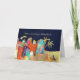 Übersetzung: "Frohe Weihnachten" auf Ungarn. Senden Sie stilvolle Feiertagswünsche mit dieser Weihnachtskarte, die eine bunte Aquarellmalerei der Geburt Christi kennzeichnet: die drei Weisen, welche die Geschenke kommen Bethlehem tragen. Sie können Text nach innen redigieren. Gewohnheitsantragwillkommen.