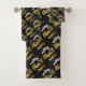 Frohe Weihnachtstypografie auf schwarzem Hintergrund Machen Sie Ihr Bad zu Ihrer eigenen Oase mit einem individuellen Handtuch, das perfekt zum stilvollen Trocknen ist.
