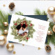 Dieses Design zeigt Frohe Weihnachten mit fröhlichen Weihnachtskranz mit einer modernen Foto-Familie 2 zwei Bilder-Layout, schlicht elegante Familie minimalistisch, rustikal grüne Typografie Drehbuch rot, ein trendige botanische Kiefernnatur-Blätter, stilvolle modische Pinsel-Drehbuch-Schriftart, einfache Aquarellzweige, Weihnachtsfeiertag Rote Heilige Heilige Heilige Heilige Heilige Heilige Berge Heilige Heilige Heilige Heilige Foto Ankündigung