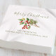 Dieses Design zeichnet sich durch eine fröhliche Weihnachtsrot und -grün aus, eine Feiertagserviette mit einfacher Typografie, eine elegante, minimalistische Kalligraphie-Schrift mit botanischer Vegetation, Heilige Beeren, minimalistische Weihnachtsserviette aus.