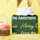 Das Weihnachtsverpackungspapier ist dunkelgrün. Es hat ein Textmuster für eine benutzerdefinierte Nachricht wie Frohe Weihnachten und den Namen des Gebers. Frohe Weihnachten erscheint in einem eleganten Imitat (nicht Folie) Gold-Skript. Der andere Text ist weiß. Der gesamte Text kann bearbeitet werden.