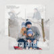 Dieses Design bietet Weihnachten Moderne niedliche, fröhliche Weihnachtsschlichte, niedliche, moderne, weiße Texttypografie, zwei Familienbilder mit 2 Fotos, ein fröhliches Weihnachtswinterdesign, mit einem einfachen und minimalen Foto-Overlay, ein weiße Blocktext-Schriftart-Overlay, Weihnachts-Weihnachtsgrüßkarte, preisfreundliches Postkartendesign, typografisches Foto, skurzeitgenmodernes Stil