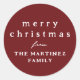 Frohe Weihnachten einfache rustikale dunkelrote Fe Runder Aufkleber