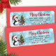 Diese stylischen, blauen und roten Weihnachtsbaum-Rücksendeadressen-Aufkleber sind mit dem Sprichwort "Frohe Weihnachten" im lässigen Script-Schriftart und einem niedlichen Pinguin in einer roten Weihnachtsmannmütze, die den Weihnachtsbaum schmückt, ausgestattet. Die Vorlage macht es einfach, Ihre Adresse vor der Bestellung einzugeben.