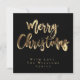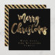Frohe Weihnachtstypografie Elegant Schwarz und Gold, Imitate Gold Foil Text und Streifen auf schwarzem Hintergrund, Moderne Schrift, Chic Weihnachtskarte