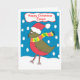 Niedlicher kleiner Robin mit Weihnachtsmannmütze, in der Schneeszene, mit dem Text Happy Christmas Ewan