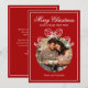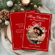 Die fröhliche Weihnachts-Happy New Year Coquette Bow Foto Holiday Card Weihnachtskarte bietet ein einfaches Design mit Ihrem Lieblings-Foto mit dem Textüberlagerungsstück "Frohe Weihnachten und ein glückliches Neues Jahr" in der modernen Kalligraphieskripttypografie mit einem weißen Bogen auf einem roten Hintergrund. Personalisiert Sie unten Ihren Namen oder benutzerdefinierten Text und Ihre benutzerdefinierte Nachricht auf der Rückseite. Ideal für Familie und Freunde, um Weihnachten und den Urlaub zu feiern. Designed by ©2025 Evco Studio www.zazzle.com/store/evcostudio