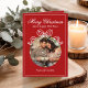 Die fröhliche Weihnachts-Happy New Year Coquette Bow Foto Holiday Card Weihnachtskarte bietet ein einfaches Design mit Ihrem Lieblings-Foto mit dem Textüberlagerungsstück "Frohe Weihnachten und ein glückliches Neues Jahr" in der modernen Kalligraphieskripttypografie mit einem weißen Bogen auf einem roten Hintergrund. Personalisiert Sie unten Ihren Namen oder benutzerdefinierten Text und Ihre benutzerdefinierte Nachricht auf der Rückseite. Ideal für Familie und Freunde, um Weihnachten und den Urlaub zu feiern. Designed by ©2025 Evco Studio www.zazzle.com/store/evcostudio