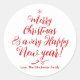 Frohe Weihnachten Glück Neujahr moderne rote Schri Runder Aufkleber
