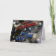 Ein fröhliches Design von glänzenden silbernen Sternen auf dunkelblau gepunktetem Hintergrund. Der Haupttext ist leicht verzerrt, das Sprichwort "Frohe Weihnachten und Glück im neuen Jahr". Kein Druck, aber Sie können Ihren eigenen Text hinzufügen. Es gibt eine andere Version dieser Karte, mit der Möglichkeit, die Karte durch Hinzufügen von 2 Fotos zu personalisieren.