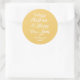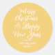 Ein moderner froher Weihnachts-Happy-Silvesteraufkleber oder Umschlag Aufkleber mit weißer, eleganter Schriftzeichen-Kalligraphie und schlichter, stylischer Typografie auf Kürbisgelb-Hintergrund. Exklusiv für Sie von Happy Dolphin Studio entworfen!