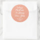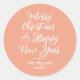 Ein moderner froher Weihnachts-Happy New Year Aufkleber oder Umschlag Aufkleber mit weißer, eleganter Schriftzeichen-Kalligraphie und schlichter, stilvoller Typografie auf Kürbisrosa Hintergrund. Exklusiv für Sie von Happy Dolphin Studio entworfen!