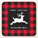 Frohe Weihnachten Hirsch Schwarz-weiß Buffalo Karo Rechteckiger Pappuntersetzer