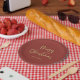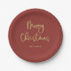 Diese schlichten und stilvollen Imitate, vergoldet und rot Feiertagspapier Teller sagen "Frohe Weihnachten" in moderner, lässiger Schrift Typografie.