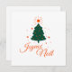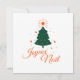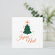 Ein warmes Design mit einem einfachen Baum und der Aufschrift "Frohe Weihnachten" in heller Rot. Das ist eine Notwendigkeit für diejenigen, die Partys in traditionellen Tönen lieben.
