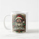 Eine festliche Tasse mit einem Weihnachtsemblem mit dem Weihnachtsmann, heiligen Blätter und klassischen Urlaubsmustern, die sich perfekt für die Saisonjubelung mit jedem Schluck eignet.