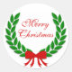 Frohe Weihnachten Laurel Leaf Wreath und Red Bow Runder Aufkleber