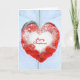 Rote Handschuhe mit einem glitzernden Eis-Herz und fröhlichem Weihnachtstext. Text kann bearbeitet werden.