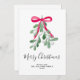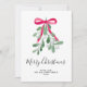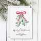 Diese Ferienkarte ist mit einem Aquarellgrün Misteloe, einem roten Band und einer stylischen Schriftzeichen-Typografie dekoriert, die "Frohe Weihnachten" sagt, leicht anpassbar. Original Wasserfarbe © Michele Davies.