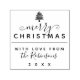 Diese selbstsüchtige Briefmarke ist ideal für alle Familien, die eine persönliche Touch für ihre Geschenke für Ihre Freunde und Familie suchen. Dieses Design enthält "Frohe Weihnachten" mit einem kleinen Weihnachtsbaumsymbol oben. Darunter steht "mit Liebe von" mit Ihrem Familiennamen und Jahr. Um dieses Design anzupassen, klicken Sie auf die Schaltfläche "Personalisieren" und geben Sie Ihre Daten in die angezeigten Textfelder ein.