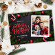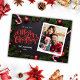Feiern Sie Ihren Urlaub mit dieser modernen und fröhlichen Weihnachtskarte mit einem Single-Foto an der Vorderseite, gerahmt mit lebhaften festlichen Details wie üppiger Vegetation, Bonbons und roten Ornamenten. Die elegante rote Schrift "Frohe Weihnachten" Nachricht Pop vor dem schlichten schwarzen Hintergrund, macht es visuell atemberaubend. Auf der Rückseite setzt sich das festliche Design fort, einschließlich eines individuellen Weihnachtswunsches und Ihres Familiennamen für eine warme, persönliche Touch. Ideal, um Freude und Feiertagssjubeln zu vermitteln! Vielen Dank für Ihren Besuch.