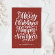 Frohe Weihnachten und viel Glück ins neue Jahr! Mit dieser skurrilen, eleganten und festlichen Urlaubskarte können Sie Ihren Urlaub bei Freunden und Familie genießen. Diese Weihnachtskarte zeichnet sich durch moderne Kalligraphie aus. Personalisieren Sie diese, indem Sie Ihre Daten hinzufügen. Diese rote Weihnachtskarte ist in Farben erhältlich.