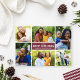 Die einfache und moderne Weihnachtskarte umfasst sechs (6) Fotos, einen individuellen Urlaubssalon und schmale Streifen auf der Rückseite. Farben: Rot und Weiß des Merlot-Weins