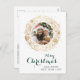 Eine stilvolle Urlaubspostkarte mit grüner Typografie "Frohe Weihnachten" auf einem schlichten, minimalistisch-weißen Hintergrund mit einem Weihnachtskranz. Foto, Name und Gruß lassen sich einfach für eine persönliche Touch anpassen. Ein einfaches, minimalistisches und zeitgenössisches Weihnachtsdesign, das sich in dieser Urlaubssaison auszeichnet! Das abgebildete Bild dient nur zur Veranschaulichung, um durch Ihr eigenes Foto ersetzt zu werden.