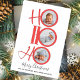 Dieses Design verfügt über eine skurrile niedliche, moderne, einfache niedliche Drehbuch,4 vier Foto-Collagen, minimalistische hospho Santa Typografie, ho ho ho fröhliche Weihnachten, saubere trendige rot und grün, minimale Kreis Foto Multi-Collage, moderne elegante, moderne Kalligraphie Skript-Schriftart, einfache und minimale whimsical Stil, Santa laugh Zitat Sprichwort