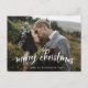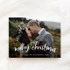 Diese moderne Postkarte bietet Ihnen Ihr persönliches Foto mit einem trendigen, weißen Schriftsatz, der "Frohe Weihnachten" sagt.