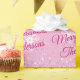 Personalisieren Sie Namen und frohe Weihnachten, oder Nachricht, in fuchsischer Skripttext auf hellrosa Hintergrund mit Glitzer und Schneeflocken; perfekt um dieses besondere Geschenk zu verpacken. Klicken Sie auf "Design bearbeiten", um Farben und Stile zu ändern.