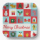 Frohe Weihnachten Niedlich Retro Winter Weihnachten Ikonen Weihnachten Papier Party Teller bietet den Text "Frohe Weihnachten" in modernen roten Schrift Typografie mit Weihnachtsbildern wie Rentier, Baum, Strumpf, Glocke, Schneemann, Geschenk, Kranz, Heilige, Stern, Bonbons, Lebkuchen, Engel und mehr. Von Evco Holidays entworfen www.zazzzle.com/store/evcoholidays