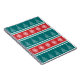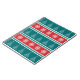 Fröhliche Weihnachtsanschauung mit Weihnachtsbaum und Schneeflocken-Dekoration auf rot, weiß, blau und türkis gestreiftem Hintergrund