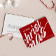 Dieses moderne Design der Weihnachtskarte verbindet festliche Eleganz mit mutiger Typografie und macht es zu einer eindrucksvollen Art, Urlaubsgrüße zu versenden. Auf der Vorderseite stehen die Worte "Frohe Weihnachten" in einem überdimensionalen Schrift und einem klassischen Serif-Schriftart mit einem lebendigen roten Hintergrund, der einen ausgeklügelten Kontrast schafft. Personalisiert mit Ihrem Familiennamen und dem Jahr, erweckt diese Karte den Geist der Saison mit Stil. Auf der Rückseite finden Sie Ihre herzliche Urlaubsbotschaft und Ihren Namen, sodass Sie sich ganz einfach mit Freunden und Familie über die warmen Wünsche austauschen können. Ideal für einen zeitgemäßen Ferienlook, der einen bleibenden Eindruck verlasst. Erhältlich als gedruckte Karten oder als sofortiger digitaler Download.