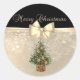 Frohe Weihnachten, Pine Tree Orange, Schneeflocken Runder Aufkleber
